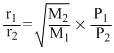 (Where P and M are oressures and molecular weights of gases A and B resprctively)