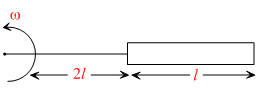 A metallic rod of length ′l′ is tied to a string of length 2l and made to rotate with angular speed ω on a horizontal table with one end of the string fixed. If there is a vertical magnetic field ′B′ in the region, the e.m.f. induced across the ends of the rod is :