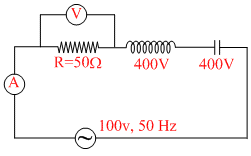 In a series LCR circuit as shown in fig. Find heat developed is 80 seconds...In the above question, the phase difference between voltage and current is :-...A series R - L - C (R = 10 Ω, XL = 20 Ω, Xc = 20 Ω) circuit is supplied by V = 10 sin ωt volt then p...The inductive reactance of an inductive coil with inductance henry and frequency 50 Hz will be:-...An AC voltage of V = 220√2 sin is applied across a DC voltmeter, its reading will be:...