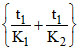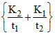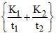 In a parallel plate capacitor, sheets of thickness t1 and t2 with dielectric constant of K1 and K2 respectively are placed. capacity of this condenser will be :