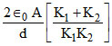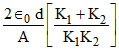 A parallel plate capacitor has the space between its plates filled by two slabs of thickness d/2 each and dielectric constant K1 and K2. d is the plate separation of the capacitor. The capacitance of the capacitor is :-