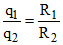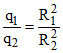 Two metallic spheres of radii R1 and R2 are connected by a thin wire. If + q1 and + q2 are the charges on the two spheres then :