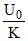 A battery charges a parallel plate capacitor of distance (d) so that an energy (U0) is stored in the system. A slab of dielectric constant (K) and thickness (d) is then introduced between the plates of the capacitor. The new energy of the system is given by :