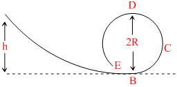 A frictionless track ABCDE ends in a circular loop of radius R. A body slides down the track from point A which is at a height h = 5 cm. Maximum value of R for the body to successfully complete the loop is :- (The velocity at point B is