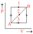 A system is taken from state A to B through three different paths 1, 2, 3. The work done is maximum in
