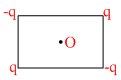 Four charges are placed at corner of a rectangle. Which of the following is true at centre (O) :-