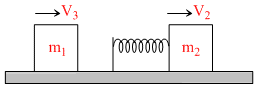 Two masses m1 = 2kg and m2 = 5kg are moving on a frictionless surface with velocities 10m/s and 3 m/s respectively. m2 is ahead of m1. An ideal spring of spring constant k = 1120 N/m is attached on the back side of m2. The maximum compression of the spring will be.