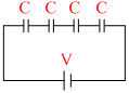 For the circuit shown in fig. Calculate the charge on 8μF capacitor...A capacitor having initial charge q0 = CE/2 is connected to a cell of e.m.f. E through a resistor R as shown. Find the t...A heating coil can heat the water of a vessel from 200 C to 600 C in 30 minutes. Two such heating coils are put in serie...A fuse wire with radius 1 mm blows at 1.5 ampere. The radius of the fuse wire of the same material to blow at 3 A will b...In the adjoining circuit, the capacity between the points A and B will be -...