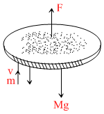A disc of mass 1·0 kg kept floating horizontally in air by firing bullets of mass 0·05 kg each vertically at it, at the rate of 10 per second. If the bullets rebound with the same speed, the speed with which these are fired will be−