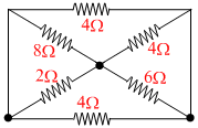 The circuit shown in figure, contains a battery, a rheostat and two identical lamp. What will happen to the brightness o...Under what condition current passing through the resistance R can be increased by short circuiting the battery of emf E2...For the resistance network shown in the figure, choose the correct option(s)...If in the circuit, power dissipation is 150 W, then R is...Thirteen resistance each of resistance R ohm are connected in the circuit as shown in the figure. The effective resistan...