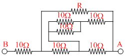 For the network of resistance shown in the fig. the equivalent resistance of the network between the points A and B is 18 Ω. The value of unknown resistance R is : -