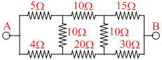 In the arrangment of resistances shown below. The effective resistance between points A and B is