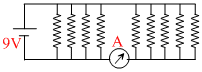 If each resistance in the fig. is of 9 Ω then reading of ammeter is : -