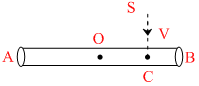 A homogeneous rod AB of length L and mass M is pivoted at the centre O in such a way that it can rotate freely in a vertical plane. The rod AB is initially in horizontal position. An insect S of same mass falls vertically with a speed V at the point C, midway between points O and B. Immediately after the insect falls, the angular velocity of the system is :-