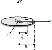 A circular plate of radius R/2 is cut from one edge of a thin circular plate of radius R. The moment of inertia of the remaining portion about an axis through O perpendicular to plane of the plate (i.e. about the y-axis) is :-