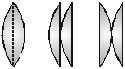 Two similar plano-convex lenses are combined together in three different ways as shown in the adjoining figure. The ratio of the focal lengths in three cases will be :-