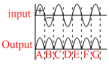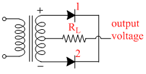 A full wave rectifier circuit along with the input and output voltage is shown in the figure then output due to diode(2) is : -