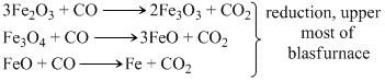 The FeO present in haematite ore or obtained during roasting is first oxidised to Fe2O3 and Fe2O3 is reduced finally to Fe.