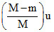 A big ball of mass M, moving with velocity u strikes a small ball of mass m, which is at rest. Finally small ball obtains velocity u and big ball v. Then what is the value of v :-
