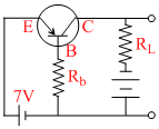 In the given transistor circuit, the base current is 35 mA. The value of Rb is VBE is assumed to negligible
