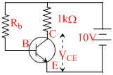 In the circuit shown here the transistor used has current gain β = 100. What should be the base resistor Rb so that VCE = 5V, VBE = 0