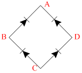 For the given circuit shown in fig, to act as full wave rectifier :- a.c. input should be connected across ................. and ..................... the d.c. output would appear across ................ and .....................