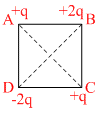 Four charges are arranged at the corners of a square ABCD as shown in the figure. The force on the charge kept at the centre will be
