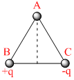 As shown in the fig. charges + q and − q are placed at the vertices B and C of an isosceles triangle. The potential at the vertex A is