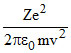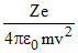 An elementary particle of mass m and charge +e is projected with velocity v at a much more massive particle of charge Ze, where Z > 0. What is the closest possible approach of the incident particle.