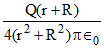Charge Q distributed on two concentric metallic shells of radii ′r′ and ′R′ in such a way that their surface charge densities are the same. Electric potential at their common centre would be : -