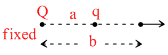 A charge q = 10-6 C of mass 2 g (fig.) is free to move then calculate its speed, when it is at a distance of b. [Assume a = 1 m, b = 10 m, Q = 10-3 C]
