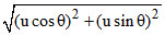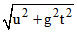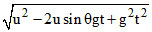 The velocity of a particle projected from the ground with initial velocity u, making angle q with the horizontal after time t is given by :-