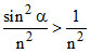 ⇒ n2 > 1 + sin2α ⇒ n > √2 {sini → 1}
