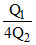 Two identical small spheres carry charge of Q1 and Q2 with Q1>>Q2. The charges are d distance apart. The force they exert on one another is F1. The spheres are made to touch one another and then separated to distance d apart. The force they exert on one another now is F2. Then F1/F2 is : -