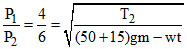 T1 - T2 = 65 - 28.88 = 36.12 gm-wt = 0.036 kg-wt