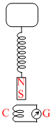 A magnet is suspended from a spring and when it oscillates, the magnet moves in and out of the coil C. The coil is connected to a galvanometer G. Then, as the magnet oscillates :-