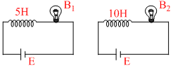 Two bulb of same rating B1 and B2 are connected in series with the inductors as shown in figure which bulb take more time to light at max. brightness.