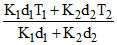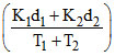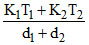 Two walls of thicknesses d1 and d2 and thermal conductivity k1 and k2 are in contact. In the steady state, if the temperatures at the outer surface are T1 and T2, the temperature at the common wall is -