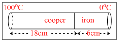 The coefficient of thermal conductivity of copper is nine times that of steel. In the composite cylindrical bar shown in the figure what will be the temperature at the junction of copper and steel ?