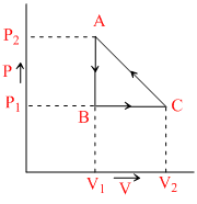 C.The amount of work done on the system is = (P2 − P1) (V1 − V2)