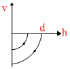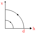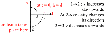 A ball is dropped vertically from a height d above the ground. It hits the ground and bounces up vertically to a height d/2. Neglecting subsequent motion and air resistance, its velocity v varies height h above the ground as