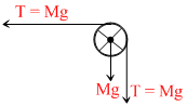 A string og negligible mass going over a clamped pully of mass m support a block of mass M as shown in the figure. The force on the pulley by the clamp is given by