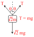 2T cosθ = √2 mg .....(ii)