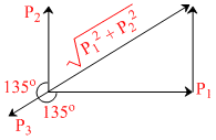 A vessel at rest explodes into three pieces. Two pieces having equal mass fly off perpendicular to one another with the same velocity 30 meter per second. The third piece has three times mass of each of other piece. The magnitude and direction of the velocity of the third piece will be