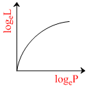 The curve between logeL and logeP is (L is the angular momentum and P is the linear momentum)