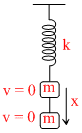 An ideal spring with spring constant k is hung from the ceiling and a block of mass M is attached to its lower end. The mass is released with the spring initially unstretched. The the maximum extension in the spring is