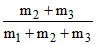 Three solids of mass m1, m2 and m3 are connected with weight less string in succession and are placed on a frictionless table. If the mass m3 is dragged with a force T. The tension in the string between m2 and m3 is :-