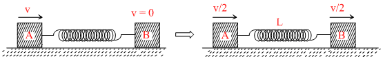 A.the kinetic energy of the A-B system, at maximum compression of the spring, is zero