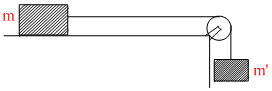 In the fig. given below masses m and m′ are tied with a thread passing over a pulley, m′ is on a frictionless horizontal surface. If acceleration due to gravity is g, the acceleration of m′ in this arrangement will be :-