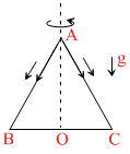 An equilateral trinangle ABC formed from a iniform wire has two small identical beads initially located at A. The triagle is set rotating about the vertical axis AO. The the beads are released from rest simultaneously and allowed to side down, one along AB and other along AC as shown. Neglecting frictional effects, the quantities that are conserved as bead slides down are